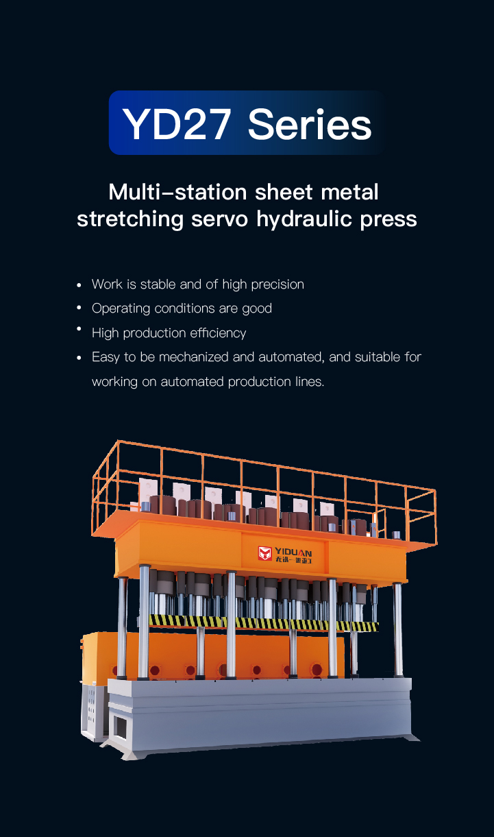 The multi-station sheet metal stretching servo hydraulic press is suitable for the stretching, forming, and trimming processes of sheet-like parts. Its core parameters revolve around servo drive performance, workstation configuration, and adaptability to stretching processes.